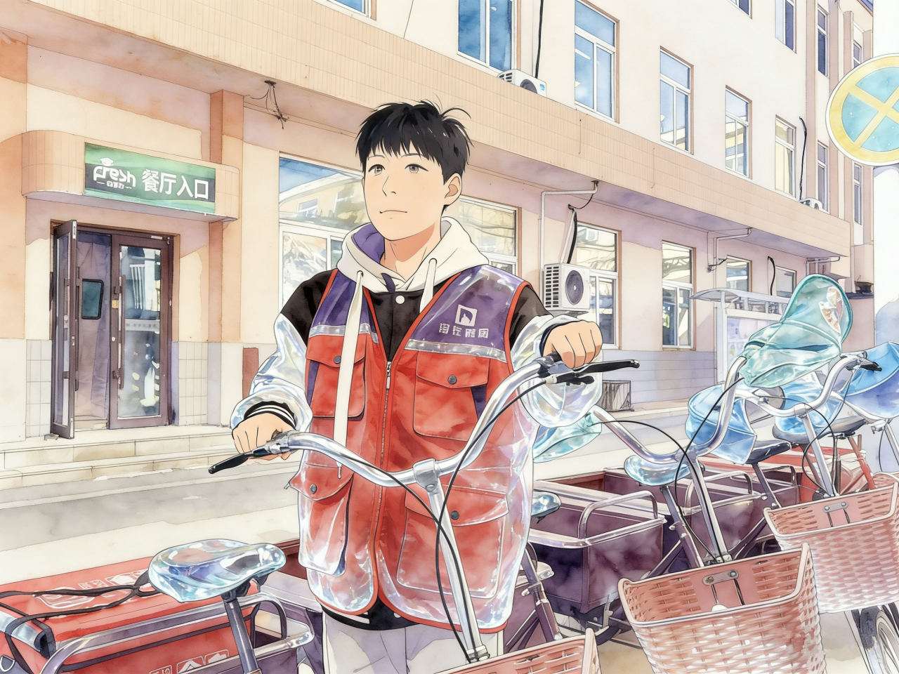 寒假在家,偶尔点开外卖软件时,总会想起辽广院校园里那些熟悉的“红马甲”。在这个节奏慢下来的假期,我特别想和大家分享一位“红马甲”同学的故事——他是我在通讯社的实践搭档,也是校园里一道匆匆却温暖的风景。